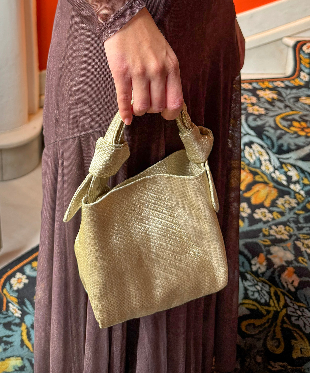 Bolso de mano confeccionado con tejido textura con asa de doble nudo.